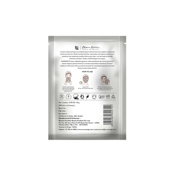 Benefits Brightens the skin Delays aging Active Ingredients Alpha hydroxy acids (AHAs), extracts of Orange peel, Aloe vera, Clove, Nutmeg, Indian Pennywort, Oat flower, Grapeseed, and pure, organic essential oils of Neroli and Myrrh. How to Use Apply the pack onto the face, avoiding the eye area. Rinse off after 20 minutes.