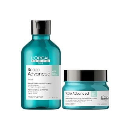 L’Oréal Professionnel Scalp Advanced Anti-Oiliness Dermo-Purifier Shampoo 300 ml + L’Oréal Professionnel Scalp Advanced Anti-Oiliness 2-In-1 Deep Purifier Clay 250 gm | For Oily Scalp