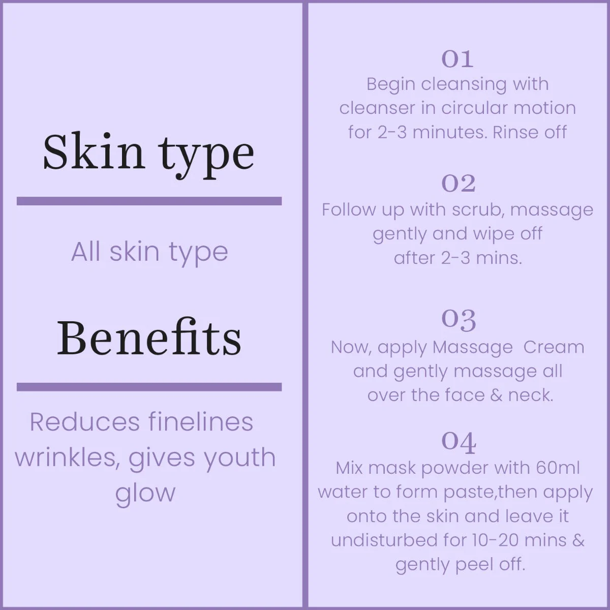 • Rejuvenates the skin