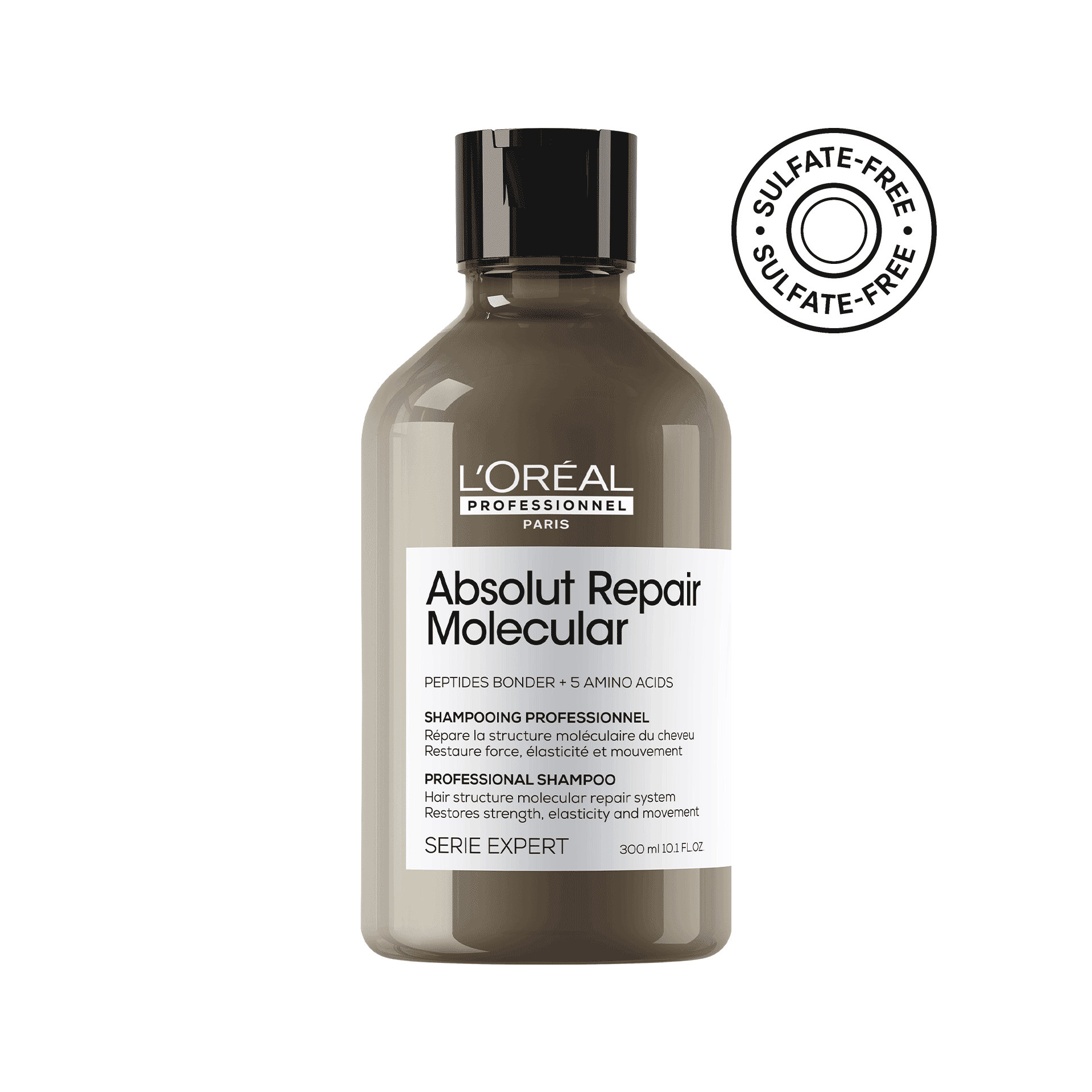 Co-developed with professionals, the patented Absolut Repair Molecular shampoo re-injects peptides bonds and amino acids into the hair to repair damage at the molecular level. When used with the rinse-off serum and the leave-in mask, it promises the ultimate hair transformation experience at home. With 2% peptides bonder and 5 amino acids, the sulfate-free shampoo repairs damage and restores strength, elasticity and movement.