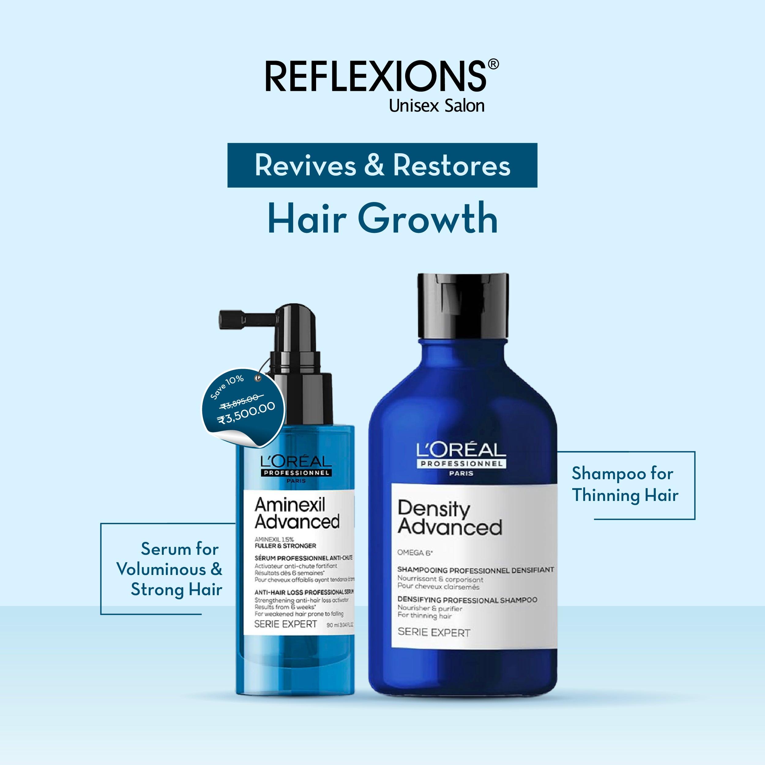 Introducing the L'Oréal Professionnel Anti-Hair Loss Regime featuring the powerful Density Advanced Shampoo (300ml) & Aminexil Advanced Serum (90ml). Say goodbye to thinning hair and hello to healthy, voluminous locks with this dynamic duo.